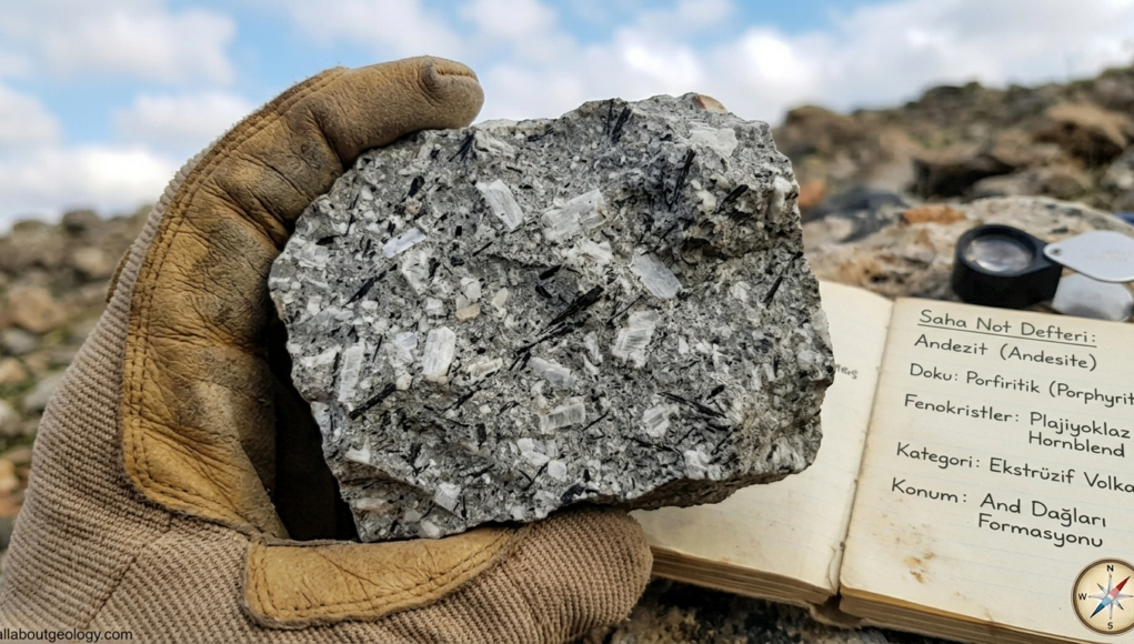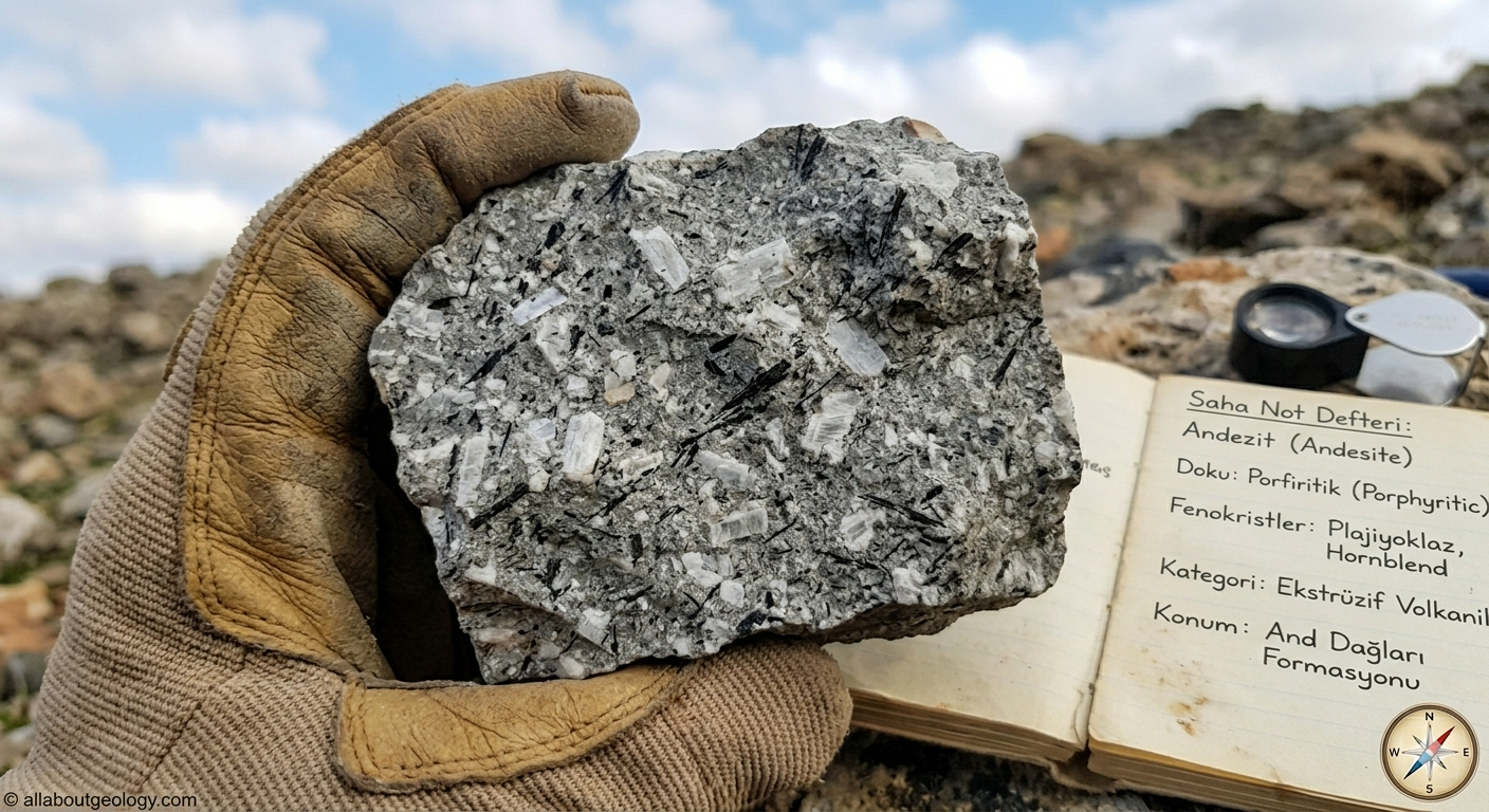 One of the most distinguishing features of andesite is its porphyritic texture. This means the rock contains two distinct sizes of crystals, revealing a complex, two-stage cooling history.