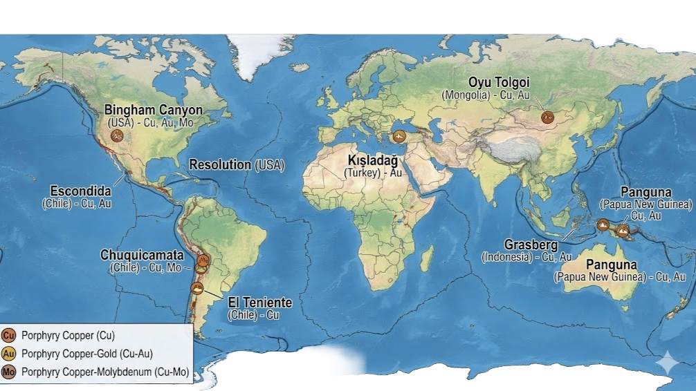 - Oyu Tolgoi (Mongolia): One of the largest developing Cu-Au projects in the world, representing a massive new generation of porphyry discoveries.